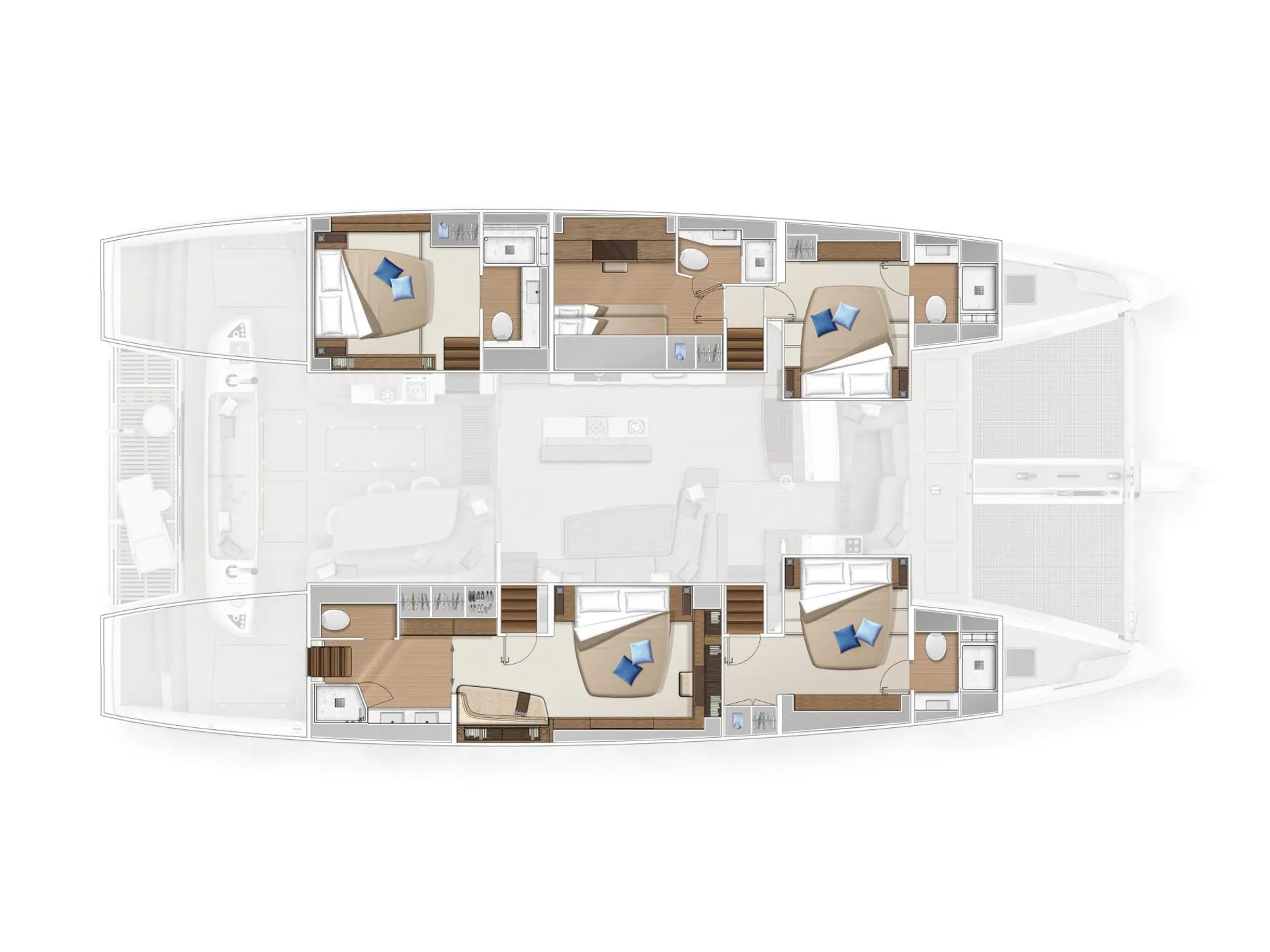 With 1 owner's cabin and 3 double cabins, all with en-suite bathrooms, Amada Mia provides accommodation for up to 8 guests on board. There are also crew cabins providing accommodation for skipper, hostess, and cook. Equipment for this boat includes autopilot, TV, Wi-Fi, cockpit speakers, cockpit shower, air conditioning, heating, full galley equipment, dinghy and much more. Water toys equipment include S.U.P boards, wakeboard, water tube, water ski, electric scooter and sea bob, so you can enjoy water activities while exploring Croatian coast. In the open saloon space and a lot of natural light coming in to the cabins, the interior feels luxurious yet homey. Let our hostess, skipper and cook pamper you on Amada Mia!